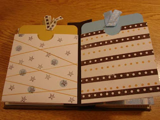 The inside is made up of pocket pages put together. We stamped those as well and then adhered them to the binding of the book which is an accordian style binding.